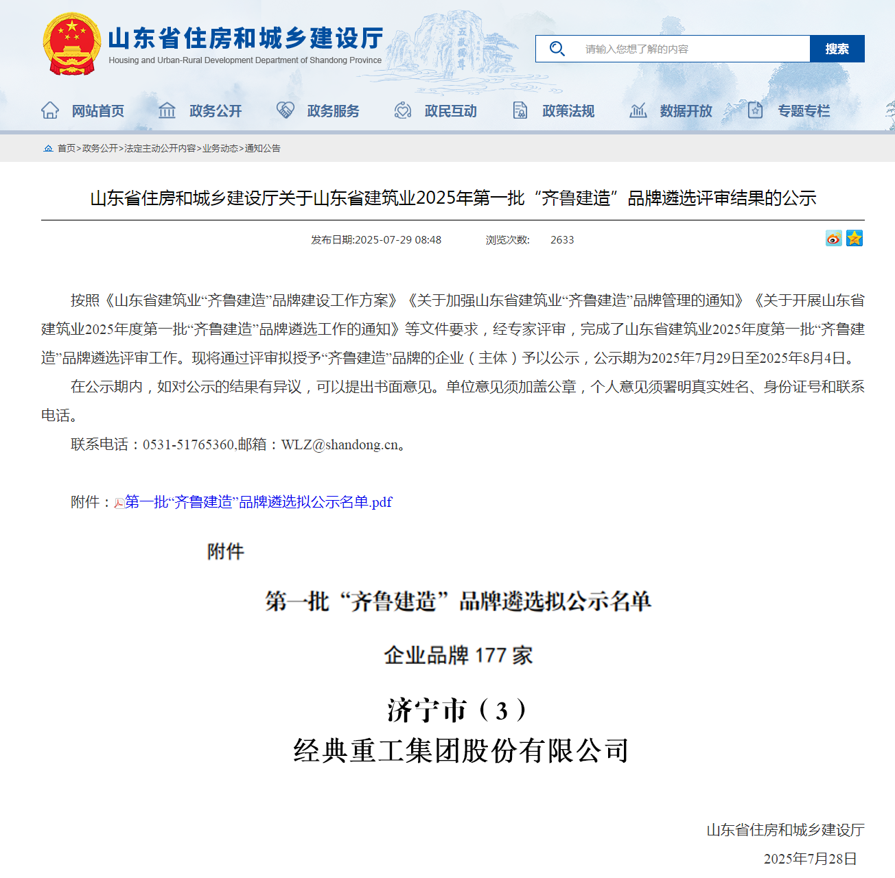近日,山東省住房和城鄉(xiāng)建設廳正式公布2025年第一批“齊魯建造”品牌遴選名單,經(jīng)典重工集團股份有限公司憑借在鋼結(jié)構(gòu)建筑部品建材領域的技術實力與品牌影響力,成功入選部品建材品牌名錄,這標志著公司在推動建筑產(chǎn)業(yè)現(xiàn)代化、智能化、綠色化發(fā)展方面的綜合實力又獲省級權(quán)威認可。2025-08-06